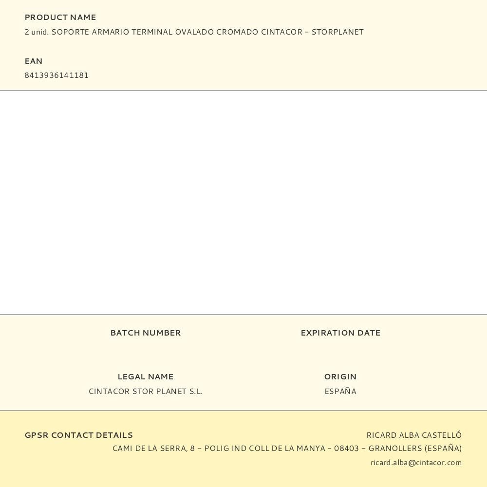 2 Unid. Soporte Armario Terminal Ovalado Cromado Cintacor - Storplanet