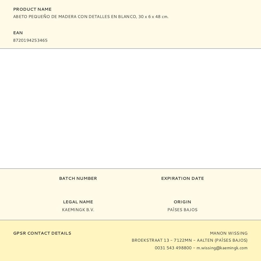 Abeto Pequeño De Madera Con Detalles En Blanco, 30 X 6 X 48 Cm.