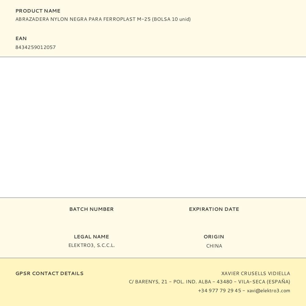 Pack 10 Abrazaderas M-25 Nylon Negra Para Ferroplast Edm