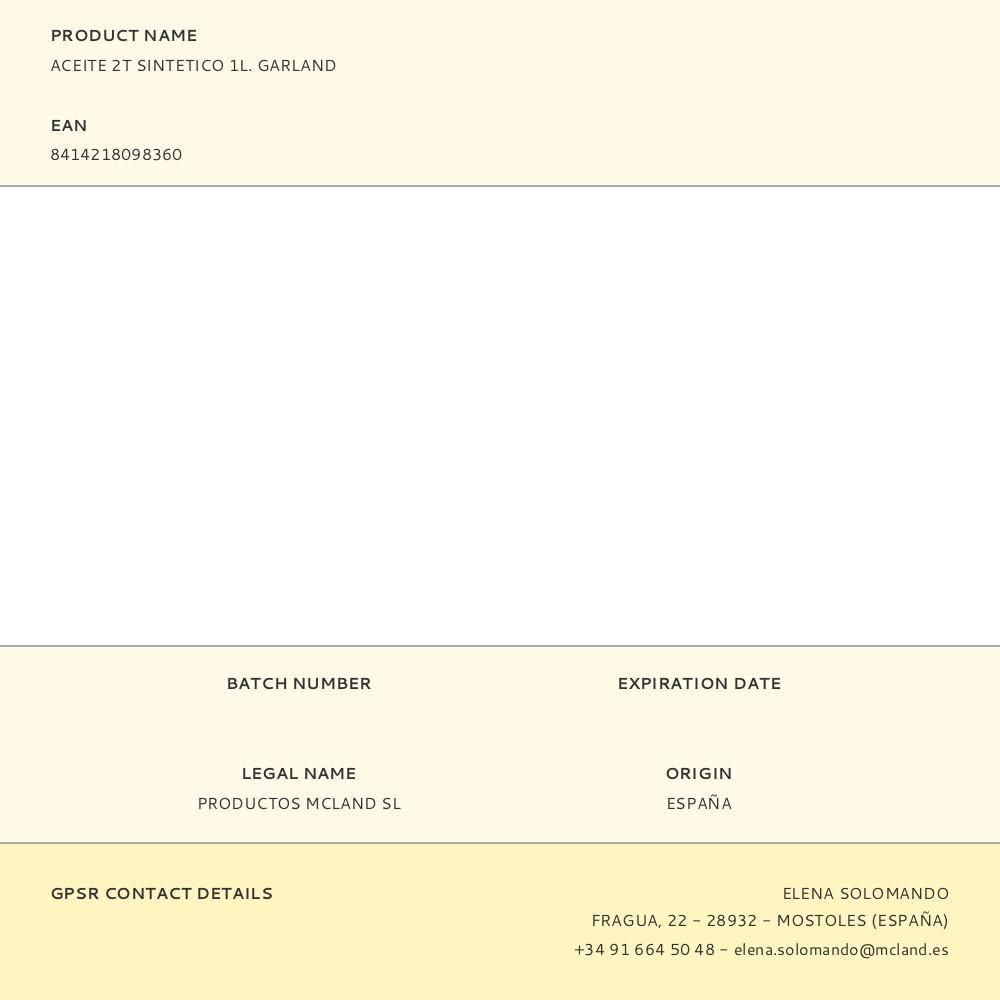Aceite 2T Sintetico 1L. Garland. Aceite De Alto Rendimiento Y Grandes Propiedades, Que Cuidan Los Motores De 2 Tiempos, Protegiéndolos Del Desgaste. Uso: Motor 2 Tiempos. Tipo Sintético