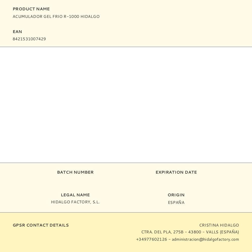 Acumulador Gel Frío, R-1000 Ultratérmico, Reutilizable, Duración Ilimitada, Medidas: 22 × 11 × 5 Cm, 1000 Ml