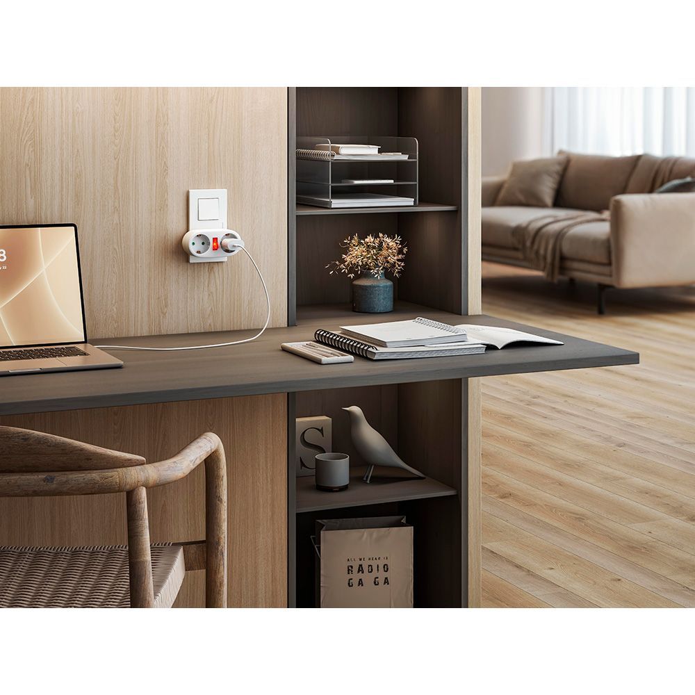 Adaptador 2 Tomas Schuko Frontal Con Interruptor, Permite Controlar De Forma Práctica Y Segura Dos Dispositivos Eléctricos Desde Un Único Interruptor, 16 A 250 V~, Blanco