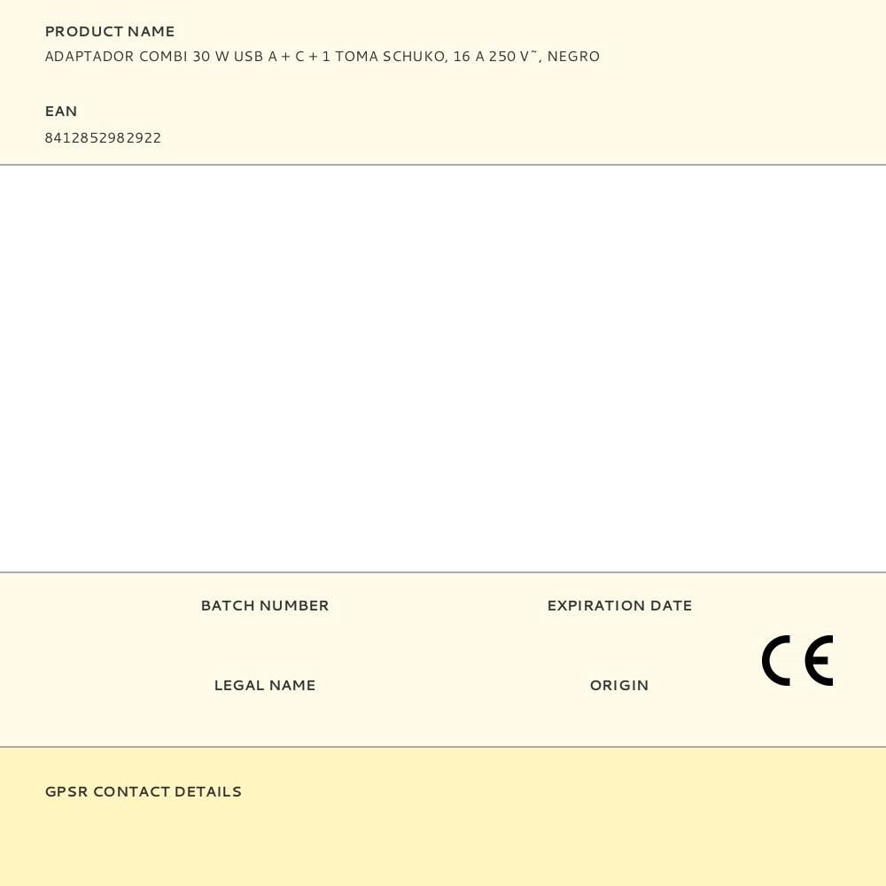Adaptador Combi 30 W Usb A + C + 1 Toma Schuko, 16 A 250 V~, Negro