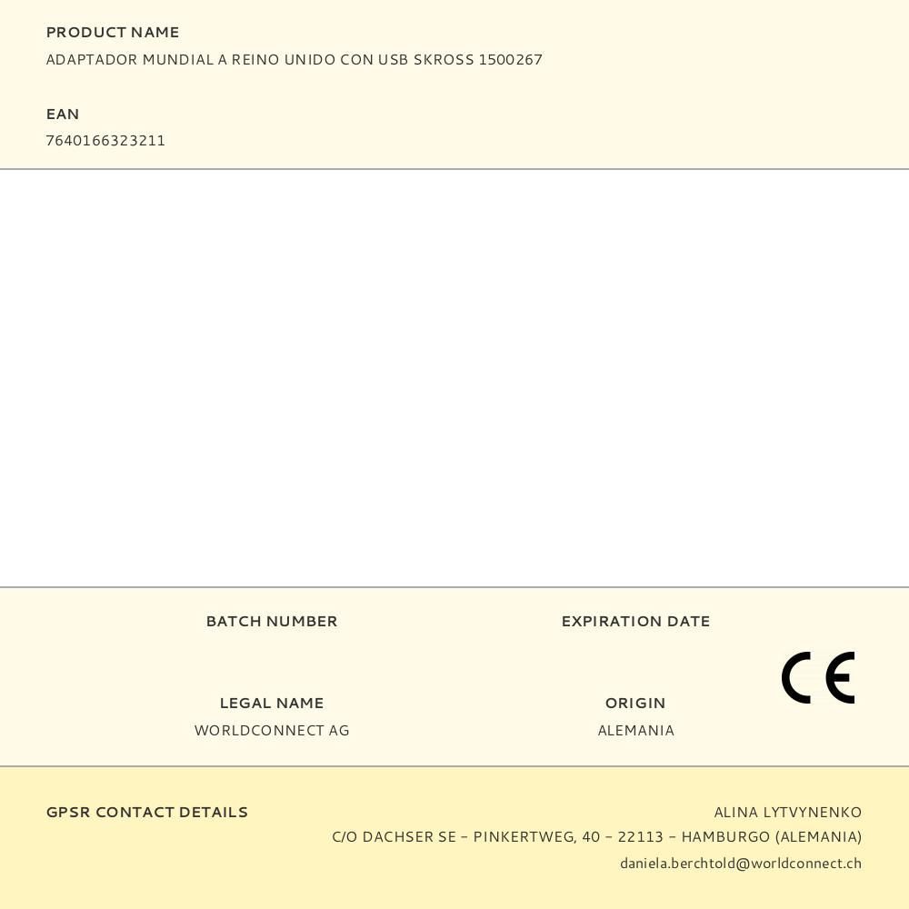 Adaptador Mundial A Reino Unido Con Usb Skross 1500267. Diseñado En Suiza. Ideal Para Equipos Con Enchufes Con Y Sin Tierra (2 Y 3 Polos) Y Dispositivos Usb. Entrada: Europa, Australia/China, Reino Unido, Estados Unidos/Japón, Suiza, Italia, Brasil. Salida: Reino Unido. Tensión De Entrada: 100V/250V. Máx. Carga: 7A. Potencia Nominal: P. Ej. 100V/700W 250V/1750W. Salida Usb Tipo A: 5,0V Cc / Máx. 2,4A, Máx. 12,0W En Total. Consumo De Energía Sin Carga: 0.05W. No Convierte Voltaje.