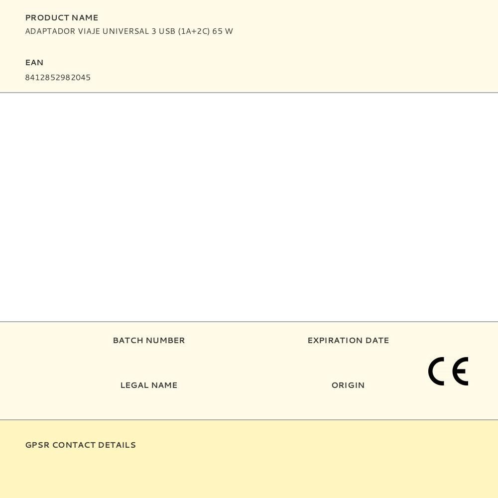 Adaptador Viaje Universal + 3 Usb (1A+2C) 65 W