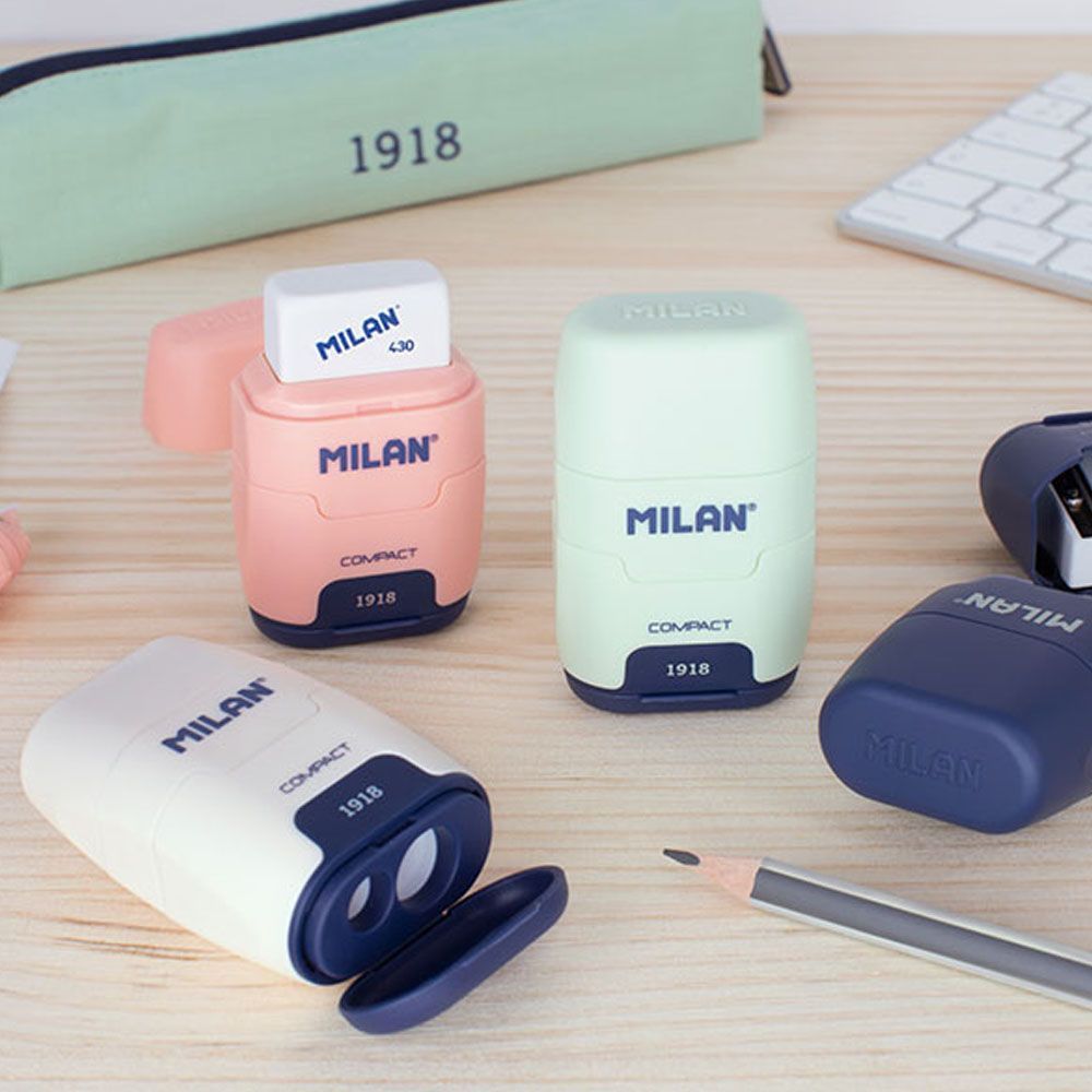 Blister Afilaborra Compact Serie 1918 Rosa + 2 Gomas De Recambio Milan. Combinación De Goma De Borrar Y Sacapuntas Doble (Uno Estándar Y Otro Maxi) Con Depósito. Diseño Compact, Serie 1918, Color Rosa. Goma Cuadrada Suave De Caucho Sintético Tipo 'Miga De Pan'. El Sacapuntas Dispone De Una Cuchilla De Acero Afilada Y Resistente, Ideal Para Todo Tipo De Lápices. Sacapuntas Con Cuchilla De Seguridad: Este Sistema Evita Que Se Pueda Separar La Hoja Del Cuerpo Del Sacapuntas. Diseño Original Creado Por El Propio Departamento De I+D De Milan. Incluye 2 Gomas De Borrar 430 De Recambio.