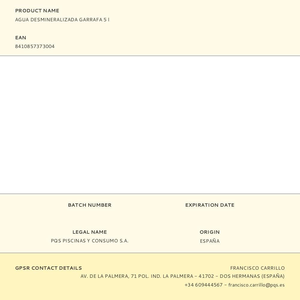 Agua Desmineralizada Garrafa 5 L