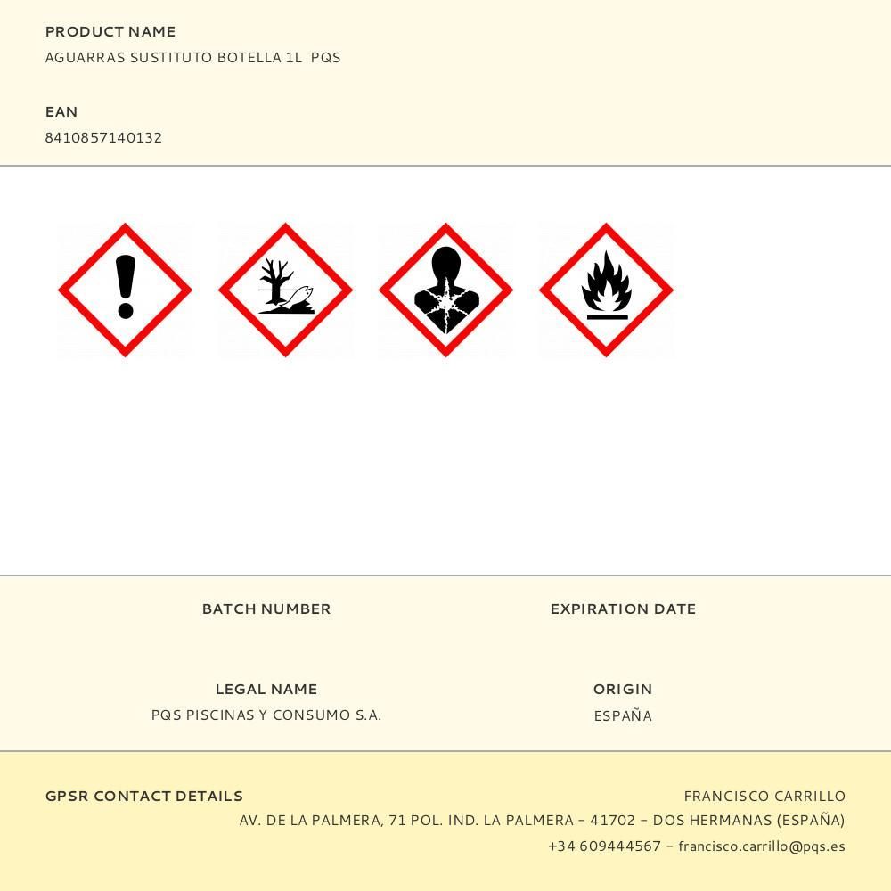 Aguarras Sustituto Botella 1L Pqs Disolvente Para Pintura Sintetica Y Minio. Ideal Para La Limpieza De Brochas, Pinceles Y Demas Utensilios