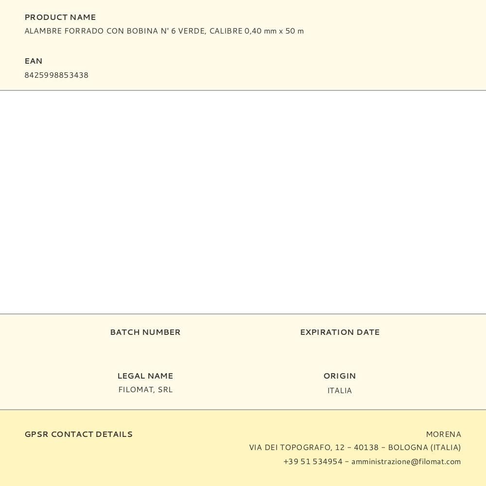 Alambre Forrado Con Bobina N° 6 Verde, Calibre 0,40 Mm X 50 M