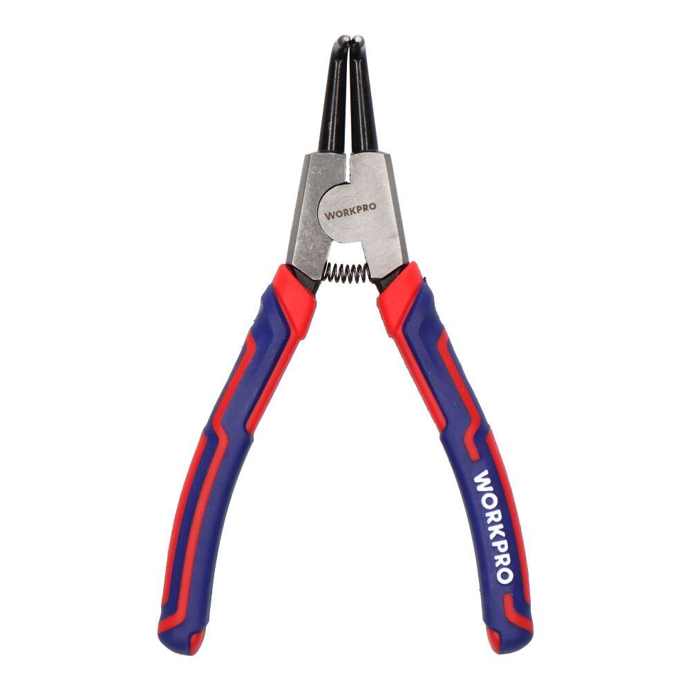 Alicates Curvos Para Arandelas Retención Interior 180 Mm. Acero Al Cromo-Vanadio, Totalmente Pulido, Acabado Negro. Mango De Agarre Cómodo De Tres Materiales, Azul Y Rojo