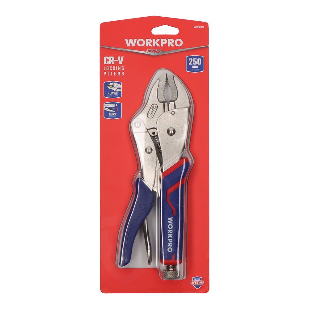 Mordazas De Presión 250 Mm / 10 Pulg. Acero Cromo Molibdeno Para Máxima Durabilidad. Acción De Bloqueo Y Liberación Rápida Y Sencilla. La Liberación Protegida Ayuda A Mantener El Trabajo Rápido Y Seguro. Gire El Tornillo Para Ajustar La Presión De Sujeción. Mango De Agarre Cómodo De Tres Materiales
