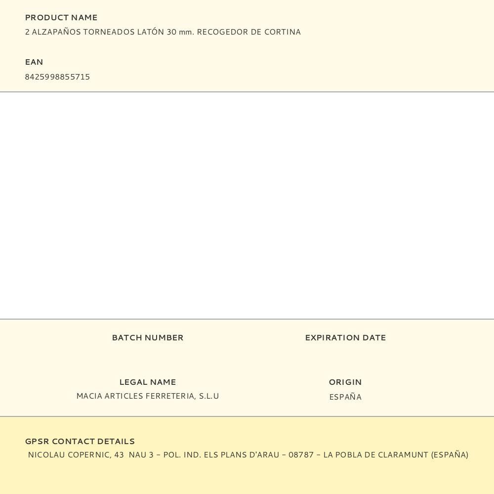 Alzapaños Torneados Latón 30 Mm. Recogedor De Cortina, 2 Uds