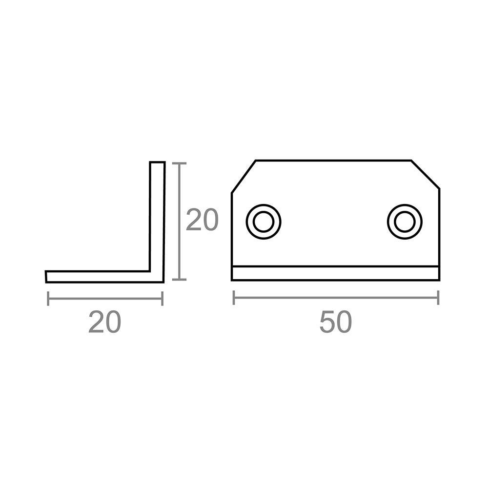 Ángulo De Refuerzo En Acero De 20 X 20 X 50 Mm. Espesor De 1 Mm. Acabado Zincado