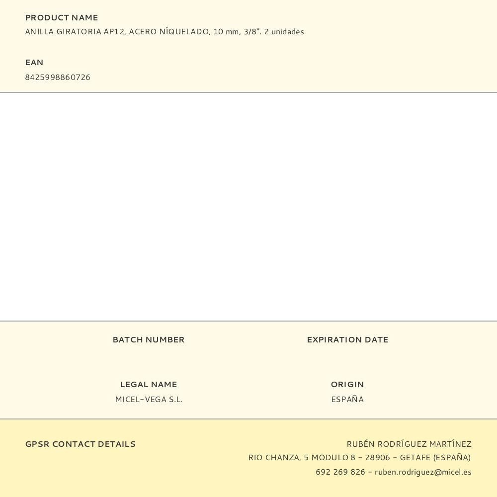 Anilla Giratoria Ap12, Acero Níquelado, 10 Mm, 3/8". 2 Unidades
