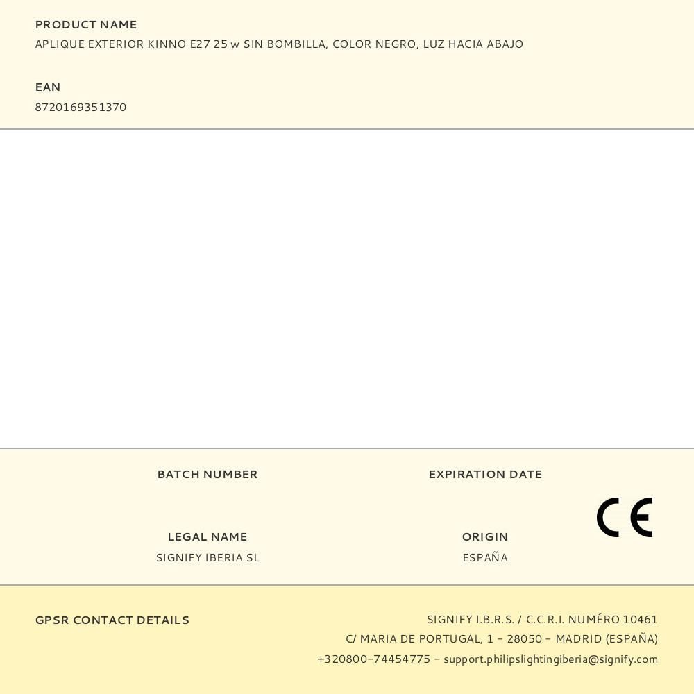 Aplique Exterior Kinno E27 25 W Sin Bombilla, Color Negro, Luz Hacia Abajo