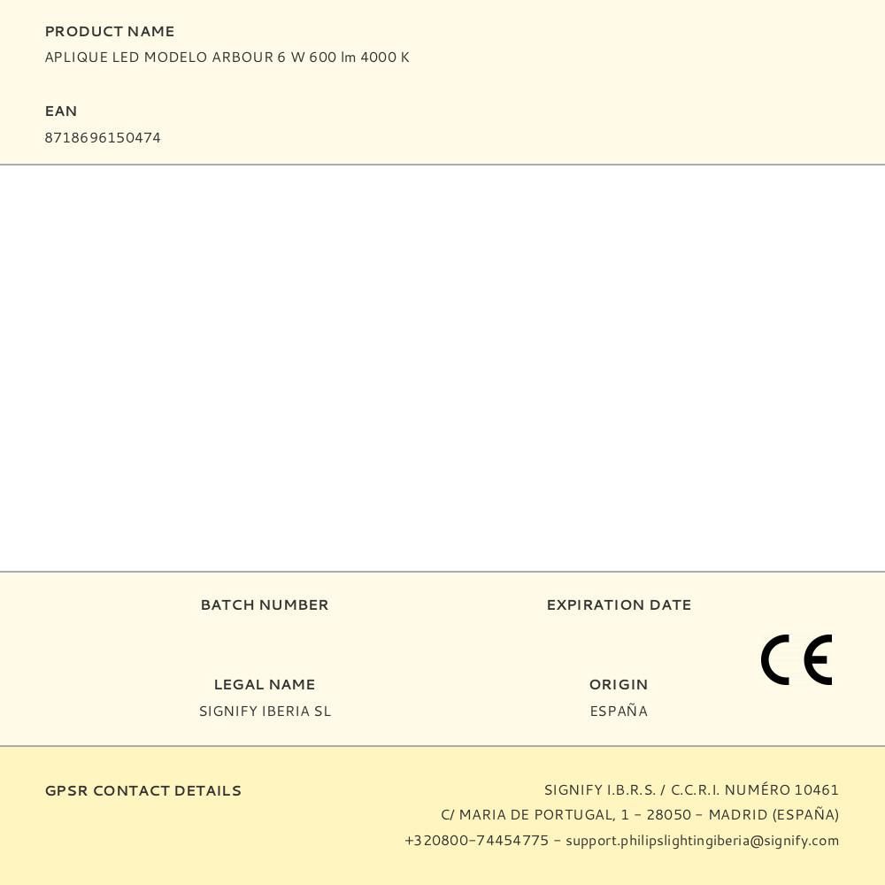 Aplique Led 6W 600Lm 4000K Mod. Arbour Philips. Ip44, No Regulable, Dimensiones: 7,5X16,6X22,1Cm (Ancho/Fondo/Alto). Fabricado En Aluminio, Color Antracita.