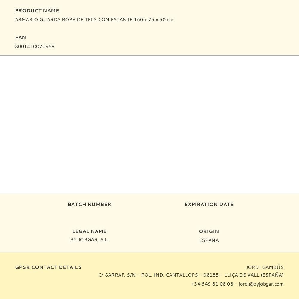 Armario Guarda Ropa De Tela Con Estante 160 X 75 X 50 Cm