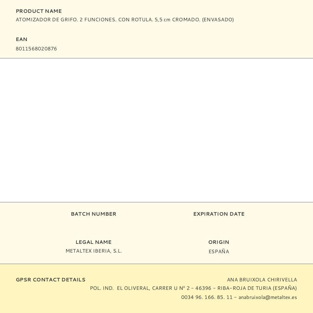 Atomizador De Grifo. 2 Funciones. Con Rotula. 5,5 Cm Cromado. (Envasado)