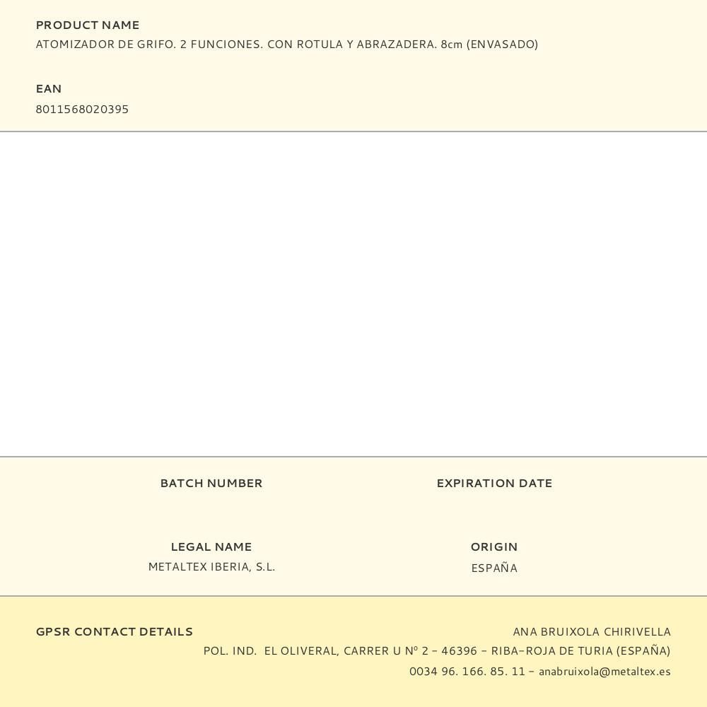 Atomizador De Grifo. 2 Funciones. Con Rotula Y Abrazadera. 8Cm (Envasado)