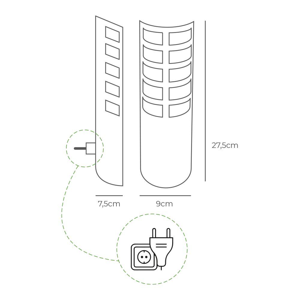 Atrapa Insectos Eléctrico 9W Con Placa Adhesiva. Medidas: 9 X 7,5 X 27,5 Cm. Radio De Acción 50 M². Tension: 220-240V. Uso Interior. Color Blanco