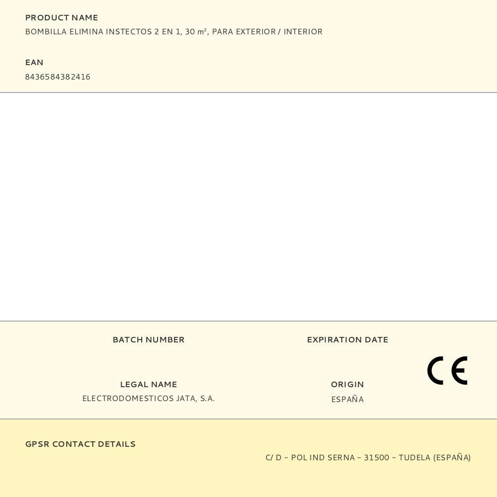 Elimina Insectos / Bombilla Área De Acción 30 M², 230 V, 5 W, Ip20. Para Exterior / Interior. Elimina Todo Tipo De Insectos Mediante Descarga Eléctrica, Silencioso. Con 4 Bombillas De Led Ultravioleta Para Atraerlos. Bombilla Con 12 Leds E Iluminación Máxima 380 Lm. Respetuoso Con El Medio Ambiente, Sin Emisión De Agentes Contaminantes. Dimensiones Ø78 Mm X 155 Mm