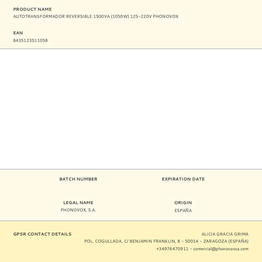 Autotransformador Reversible 1500Va (1050W) 125-220V Phonovox