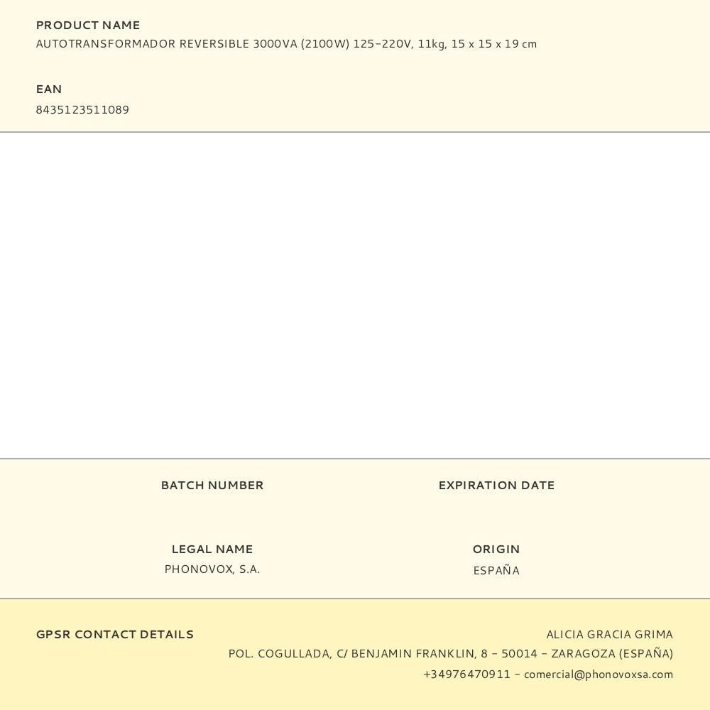 Autotransformador Reversible 3000Va (2100W) 125-220V, 11Kg, 15 X 15 X 19 Cm