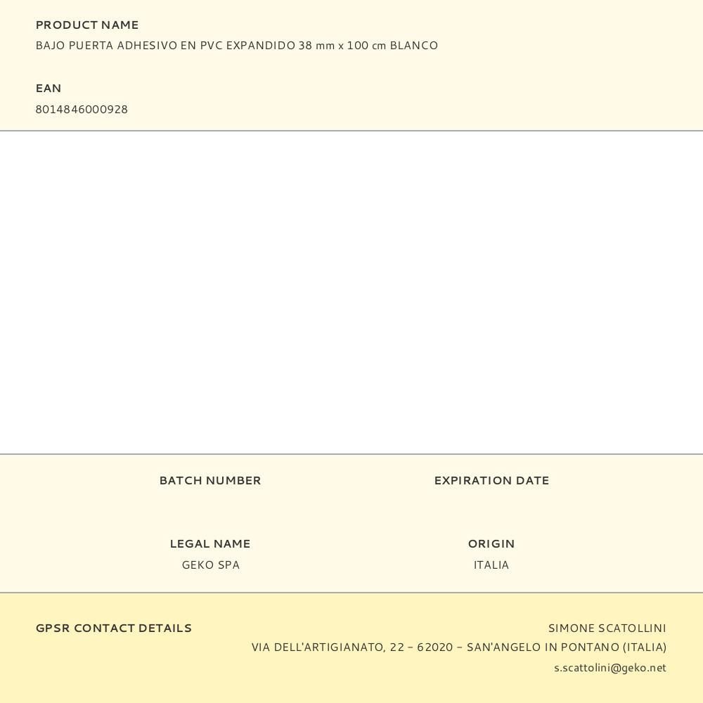 Bajo Puerta Adhesivo En Pvc Expandido 38 Mm X 100 Cm Blanco