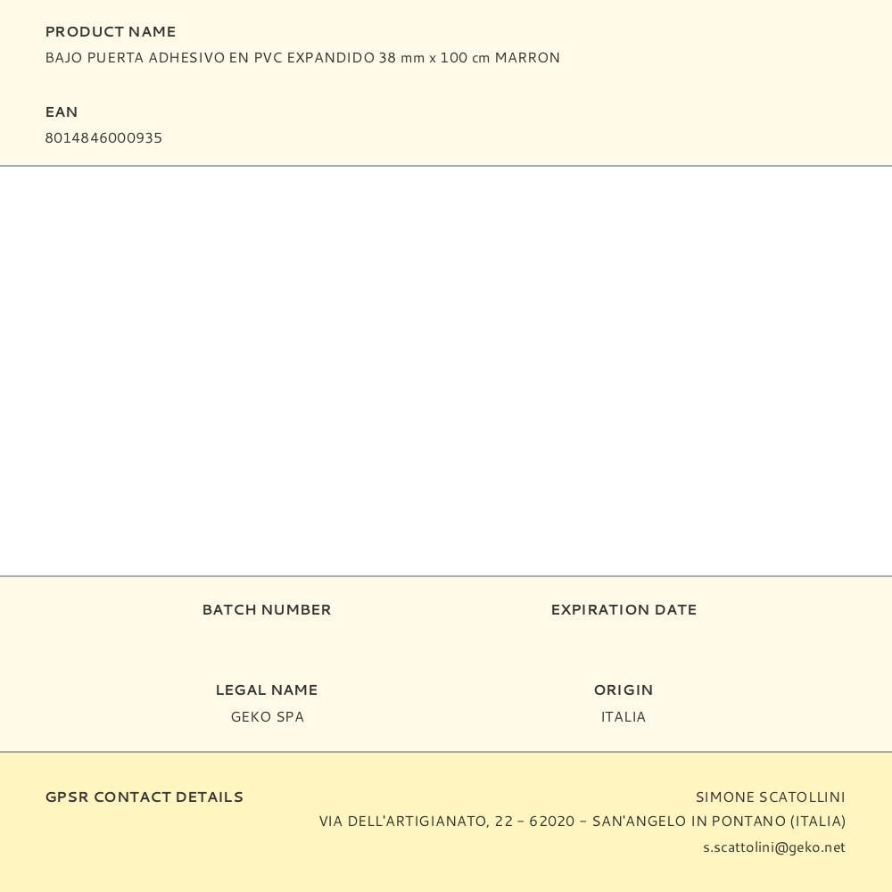 Bajo Puerta Adhesivo En Pvc Expandido 38 Mm X 100 Cm Marrón