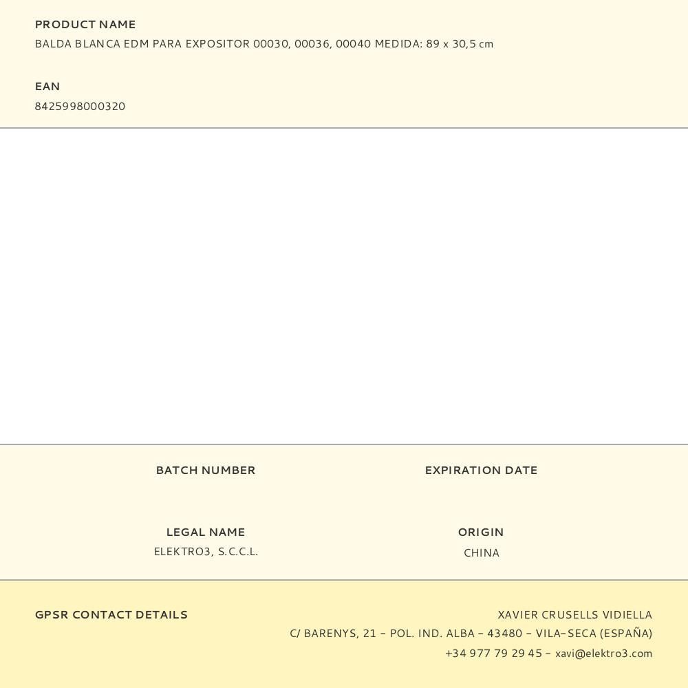Balda Blanca Edm Para Expositor 00030, 00036, 00040 Medida: 89 X 30,5 Cm
