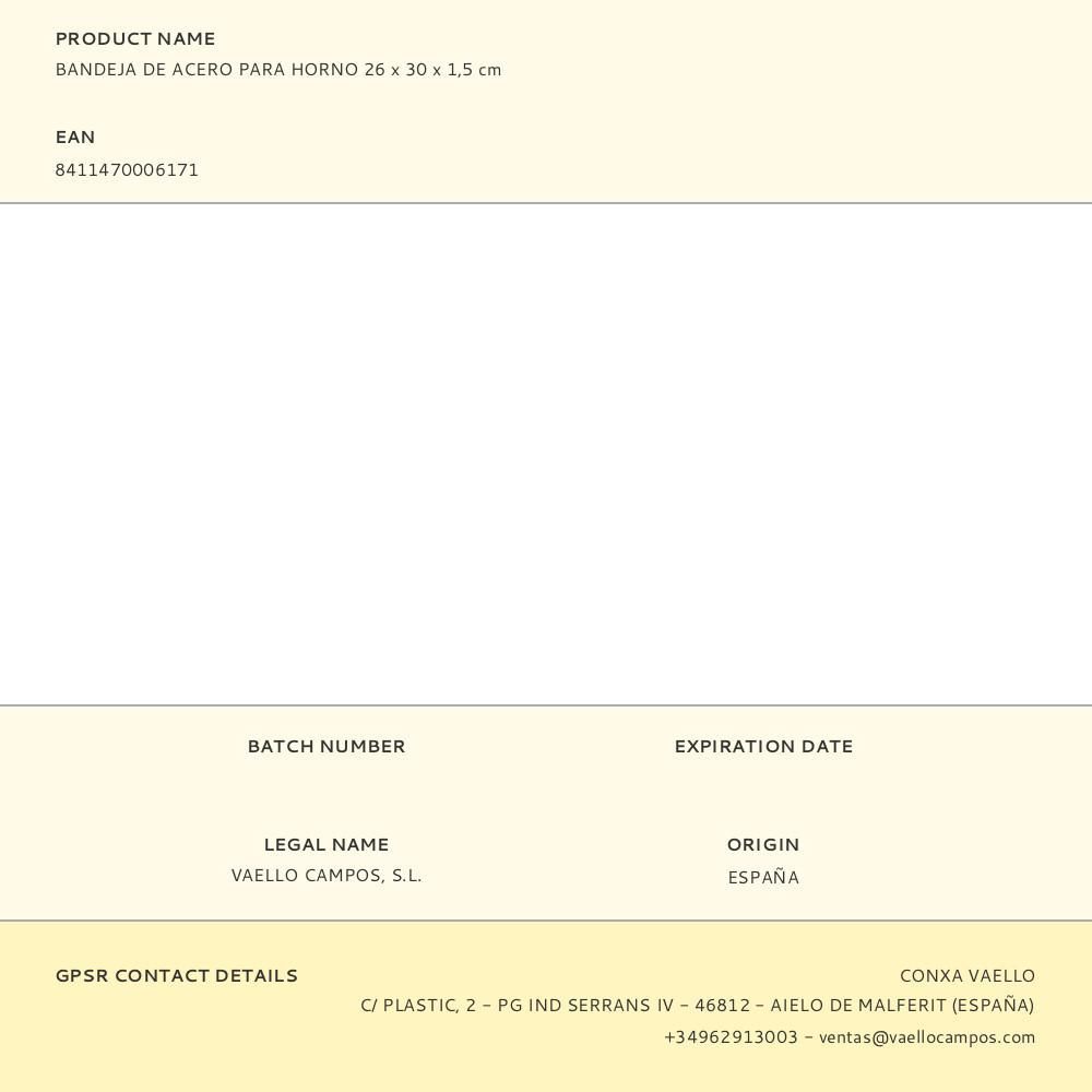 Bandeja De Acero Para Horno 26 X 30 X 1,5 Cm. Medidas Sin Incluir Asas. Apta También Para Fuegos De Llama