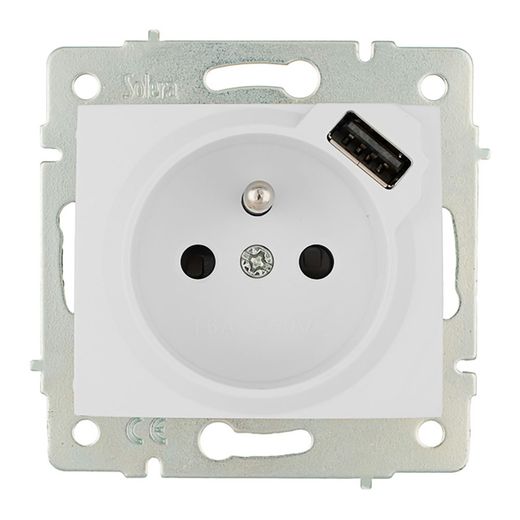 Base Bipolar Con T/T Con Toma Francesa 16A 250V Con Usb Con Obturador 83X81Mm Color Blanco, Contactos De Plata De Alto Poder De Ruptura. Usb 2,1A 5V. Embornamiento Por Tornillo Serie Europa Solera Erp60Fusb