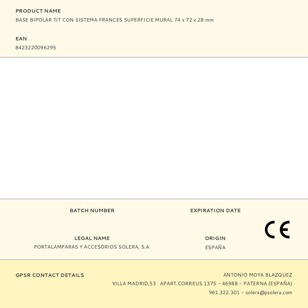 Base Bipolar T/T Con Sistema Frances 74X72X28Mm (Ancho/Fondo/Alto) Superficie Mural Solera Mur60Fu