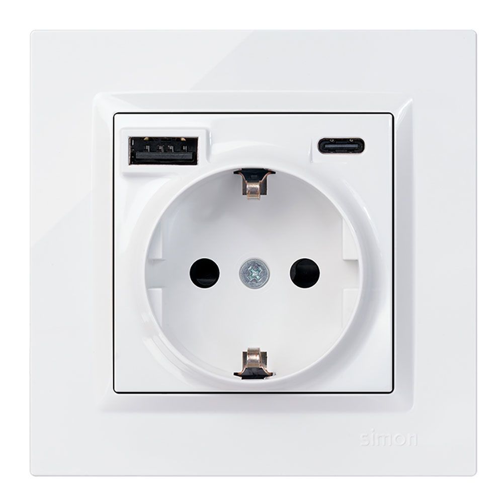 Base Enchufe Schuko + Usb A + C 10,5 W 16 A 250 V~, Simon 10, Blanco
