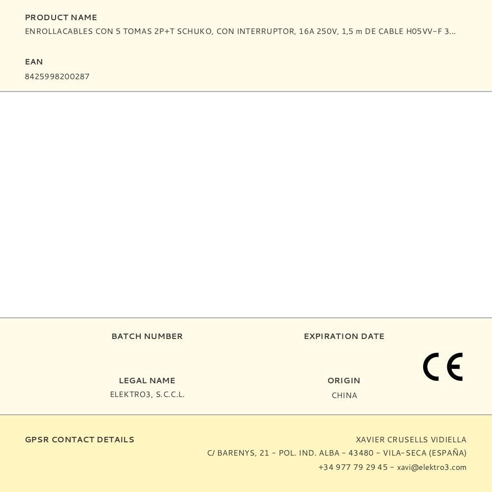 Base Múltiple Con 5 Tomas 2P+T Schuko, Con Interruptor, 1,5 M De Cable H05Vv-F 3G1,5 Mm², Incluye Ranura Recoge Cable, Máx. 3680W, Blanca, Ø160 X 45 Mm