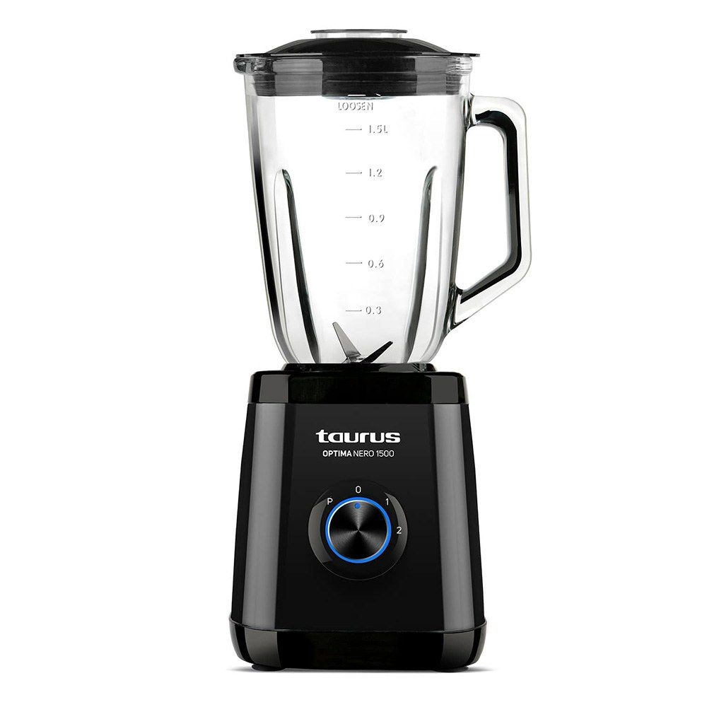 Batidora De Vaso Optima Nero 1500 W, Con Jarra De Cristal Graduada De 1,5 L, 2 Velocidades + Pulse/Pica Hielo, Cuchilla Desmontable De 4 Filos De Acero Inoxidable. Boca De Vertido En La Jarra, Pies Antideslizantes Y Sistema De Seguridad Permitiendo Que Sólo Se Active Cuando La Jarra Está Bien Colocada. Jarra Y Cuchillas Aptas Para Lavavajillas