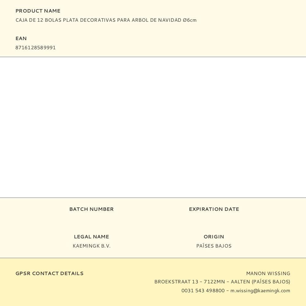 Bolas Decoración Árbol Navidad Ø6 Cm, Plata, Caja 12 Uds