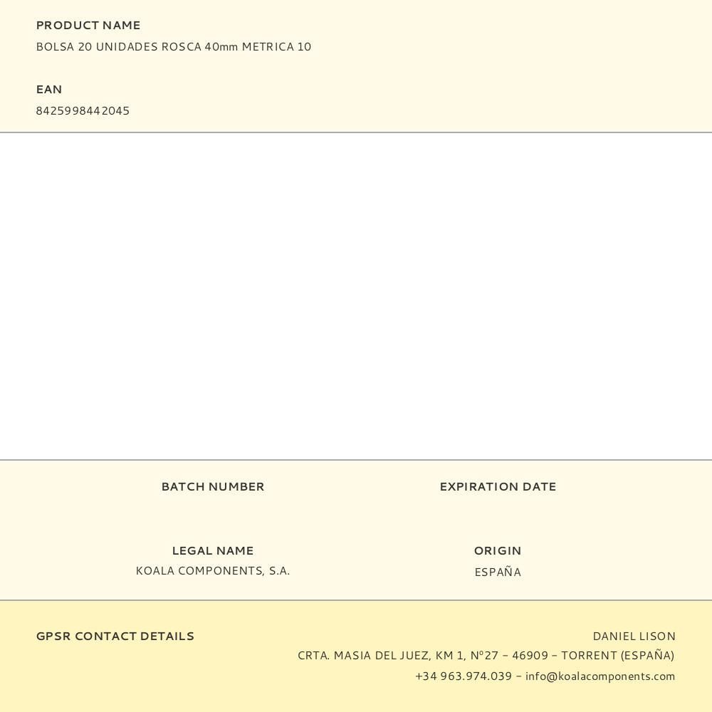 Bolsa 20 Unidades Rosca 40Mm Metrica 10