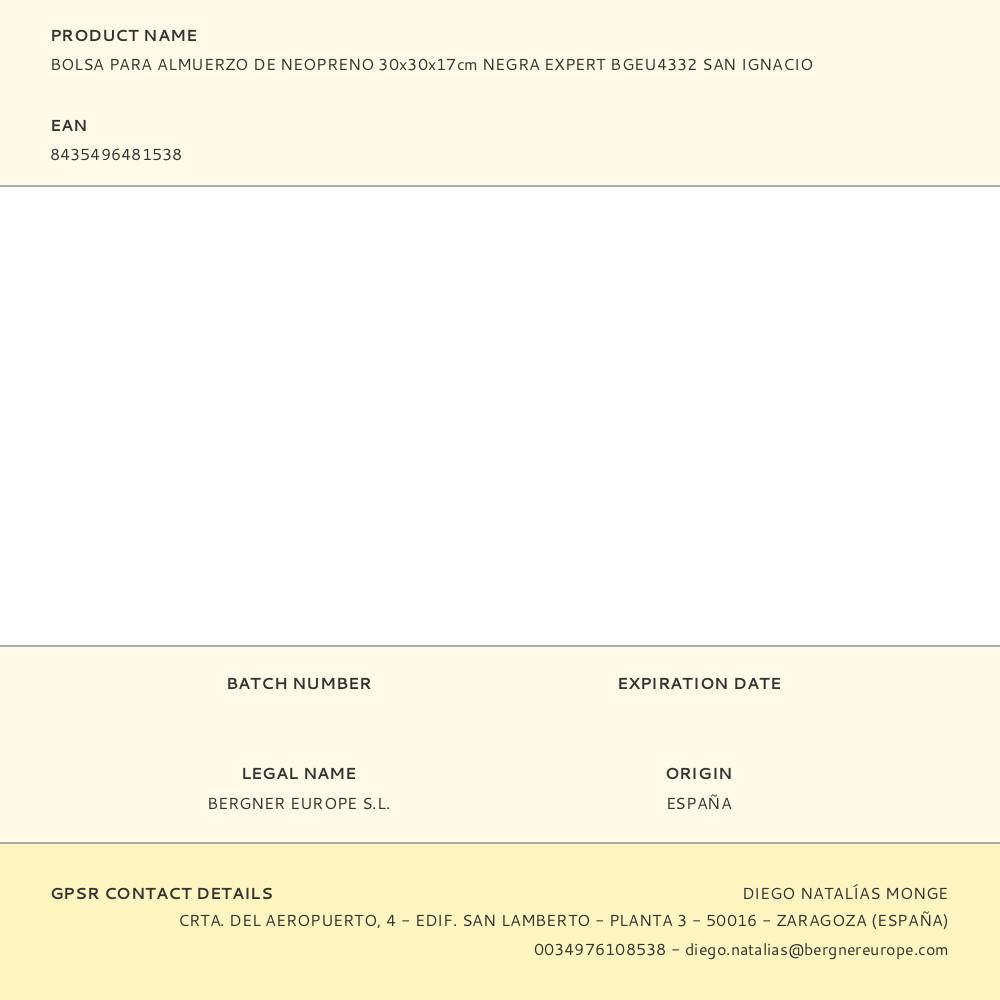 Porta Alimentos Expert, Apto Para Llevar Más De Una Fiambrera. Térmico Fabricado En Neopreno Negro