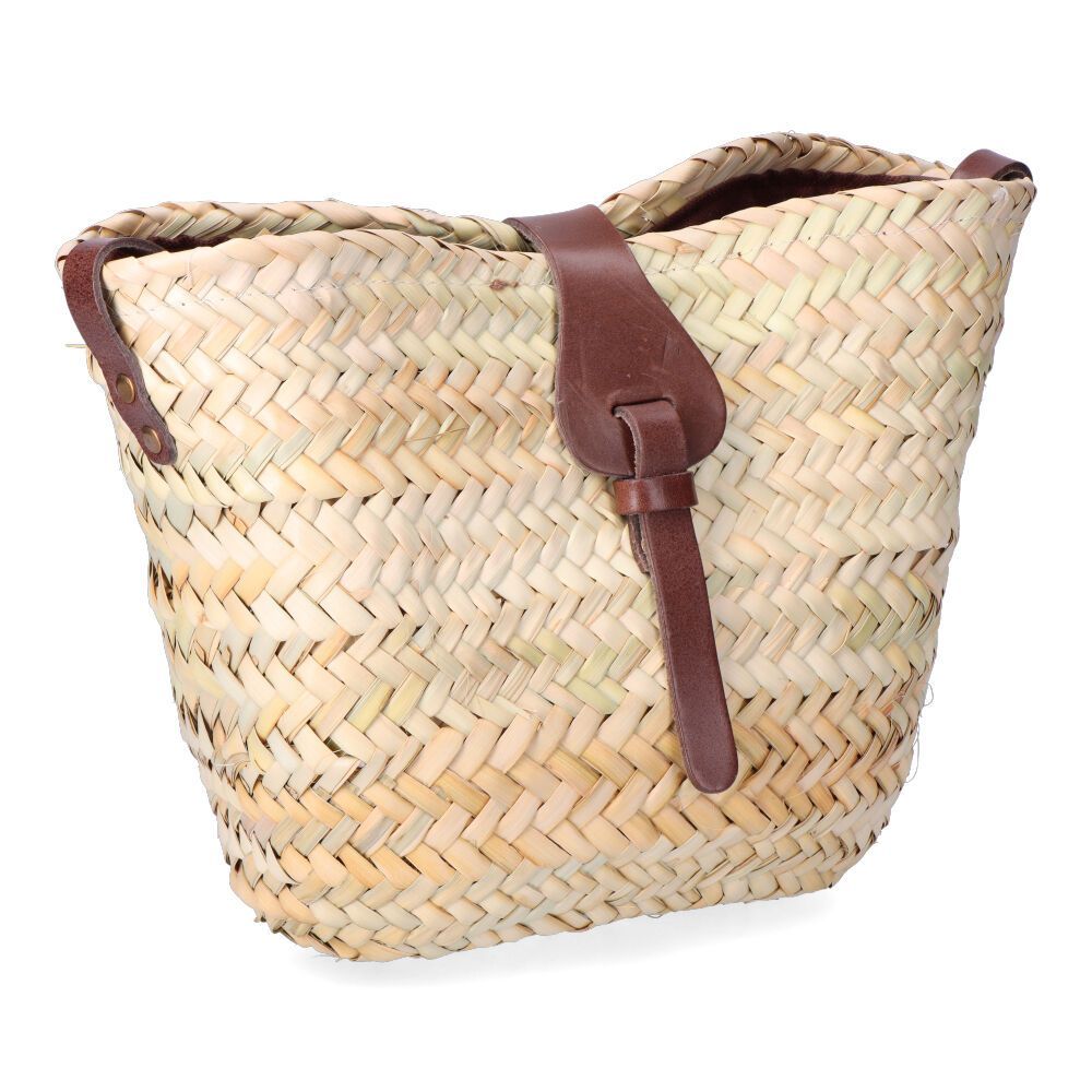 Bolso Plano Con Presilla Y Asa Bandolera 2 Colores Surtidos. Material Palma Y Cuero.Medidas:31X22Cm