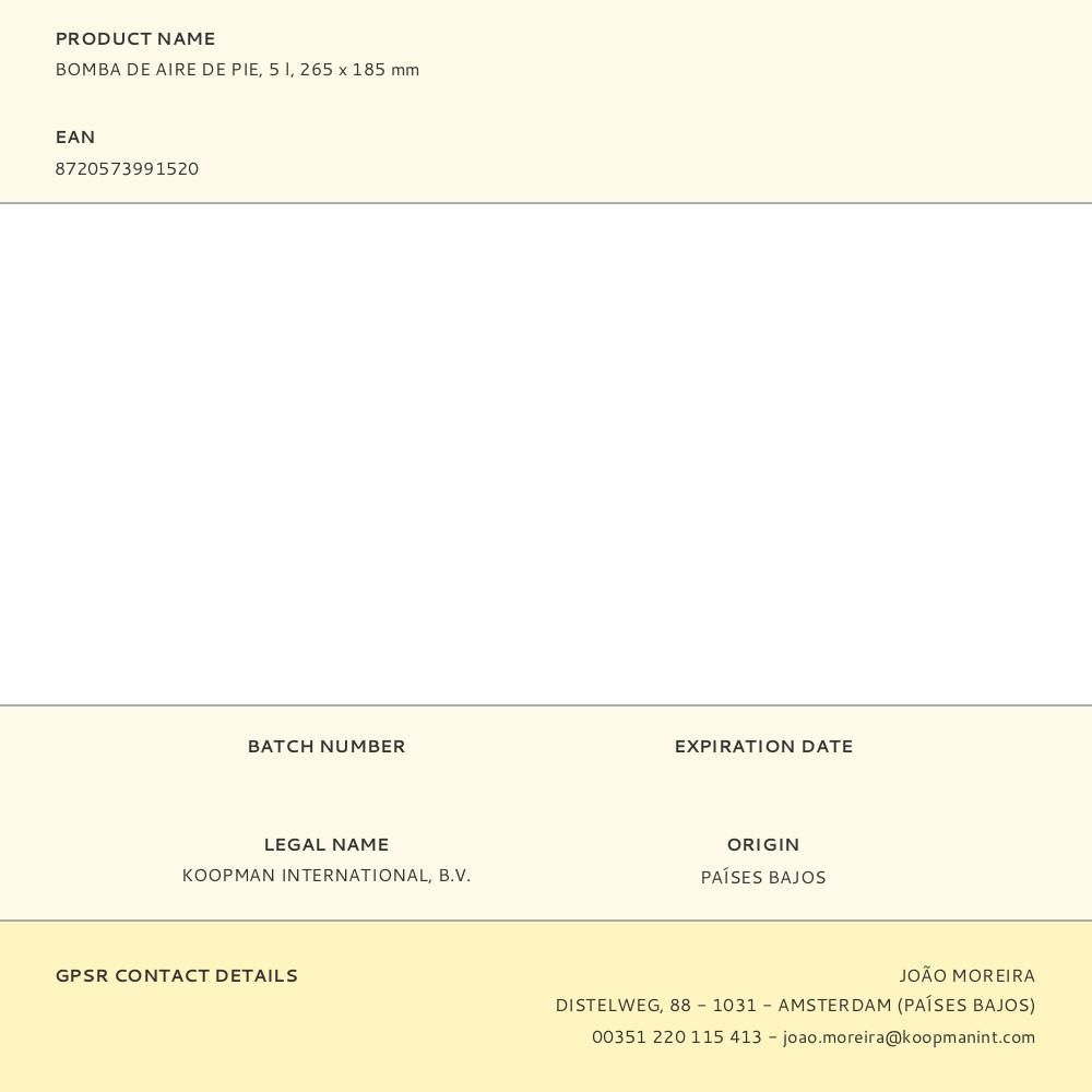 Bomba De Aire De Pie, 5 L, 265 X 185 Mm