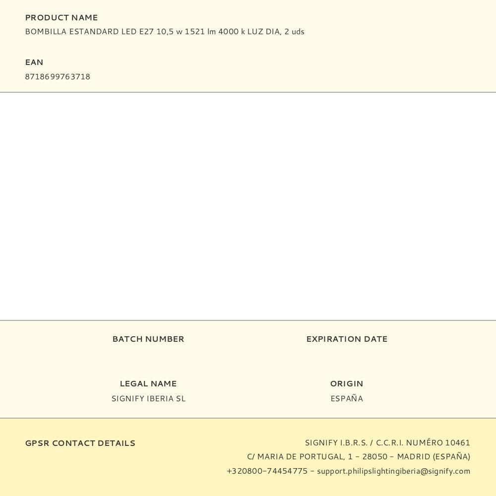 Bombilla Estándar Led E27, 10,5 W, 1521 Lm, 4000K, Luz Día, 2 Uds