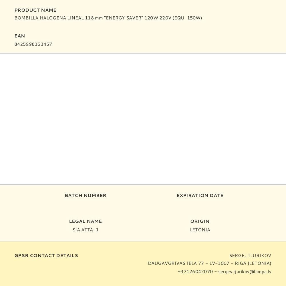 Bombilla Halogena Lineal 118 Mm "Energy Saver" 120 W 220/240 V (Equ. 150W)