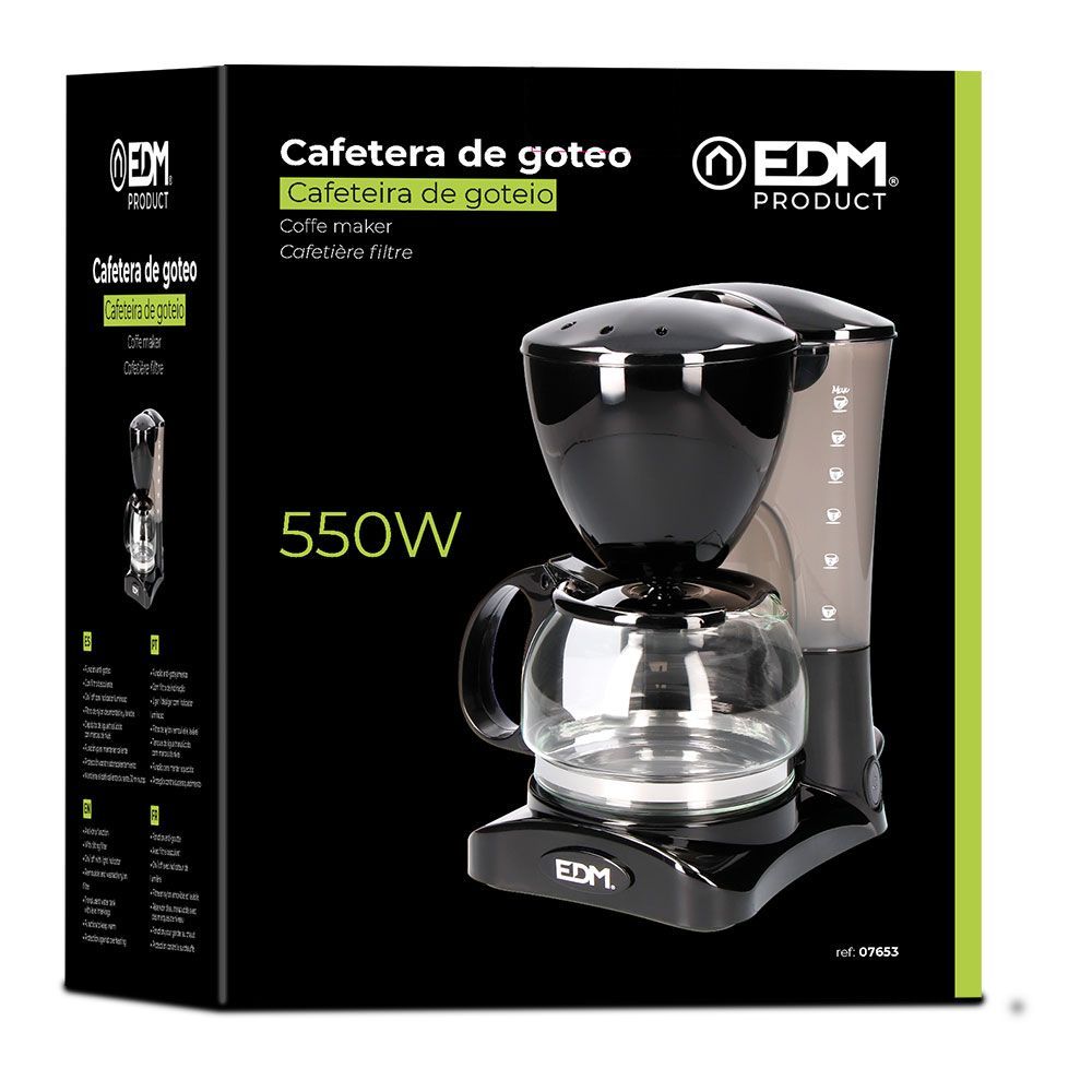Cafetera De Goteo 6 Tazas Potencia: 550 W. Función Anti-Goteo. Filtro Basculante De Nylon Desmontable Y Lavable. Indicador Luminoso On/Off. Depósito De Agua Traslúcido Con Marcas De Nivel. Función De Termoretención. Mantiene El Café Caliente Durante 30 Min. Protección Contra Sobrecalentamiento. Jarra De Cristal. 220 - 240 V ~ 50 Hz. Dimensiones: 16,5 X 12,5 X 24 Cm