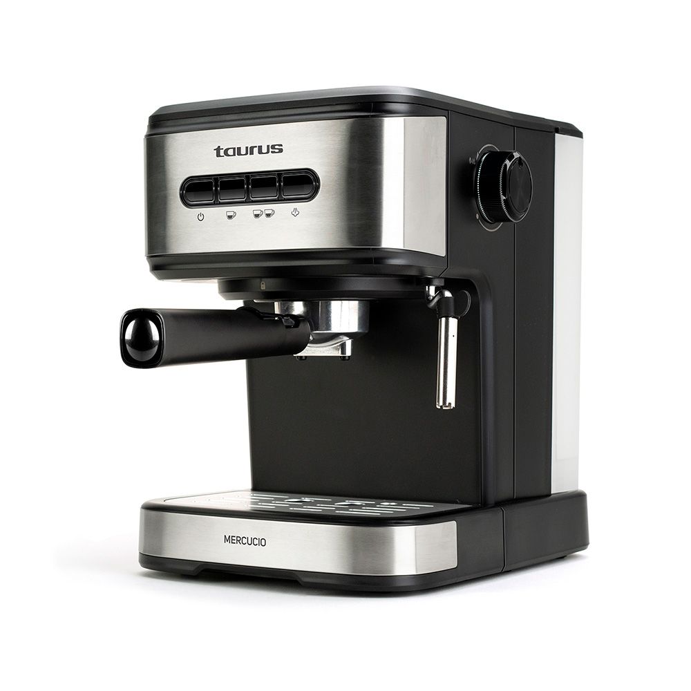 Cafetera Espresso Mercucio 850 W. Presión 20 Bar. Sistema Extra-Cream 100% Espresso. Volumen Taza Programable, Función Preinfusión, Función De Autoapagado. Portafiltros Con 2 Cacillos. Panel Frontal De Acero Inoxidable Y Teclado Retroiluminado. Vaporizador De Acero Inoxidable Orientable. Bandeja Recogegotas Extraíble Y Bandeja Superior Calienta Tazas