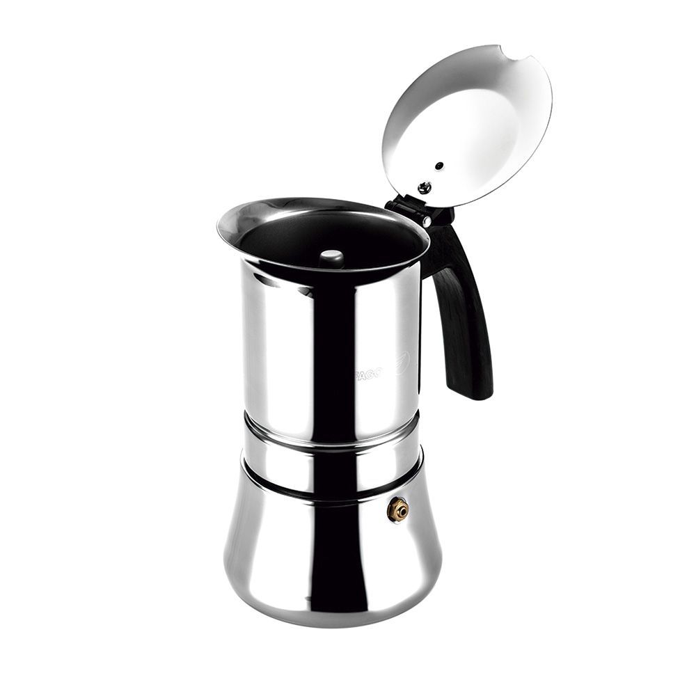 Cafetera Etnica 4 Tazas Acero Inoxidable 18/10. Deposito De Aleación Aisi 430 Y Jarra Aisi 304. Acabado Exterior Pulido Espejo. Junta De Silicona De Gran Durabilidad. Mangos Termoaislantes Fabricados En Nylon Muy Resistente. Apto Para Todo Tipo De Fuegos. Facil Limpieza. No Apta Para Lavavajillas.