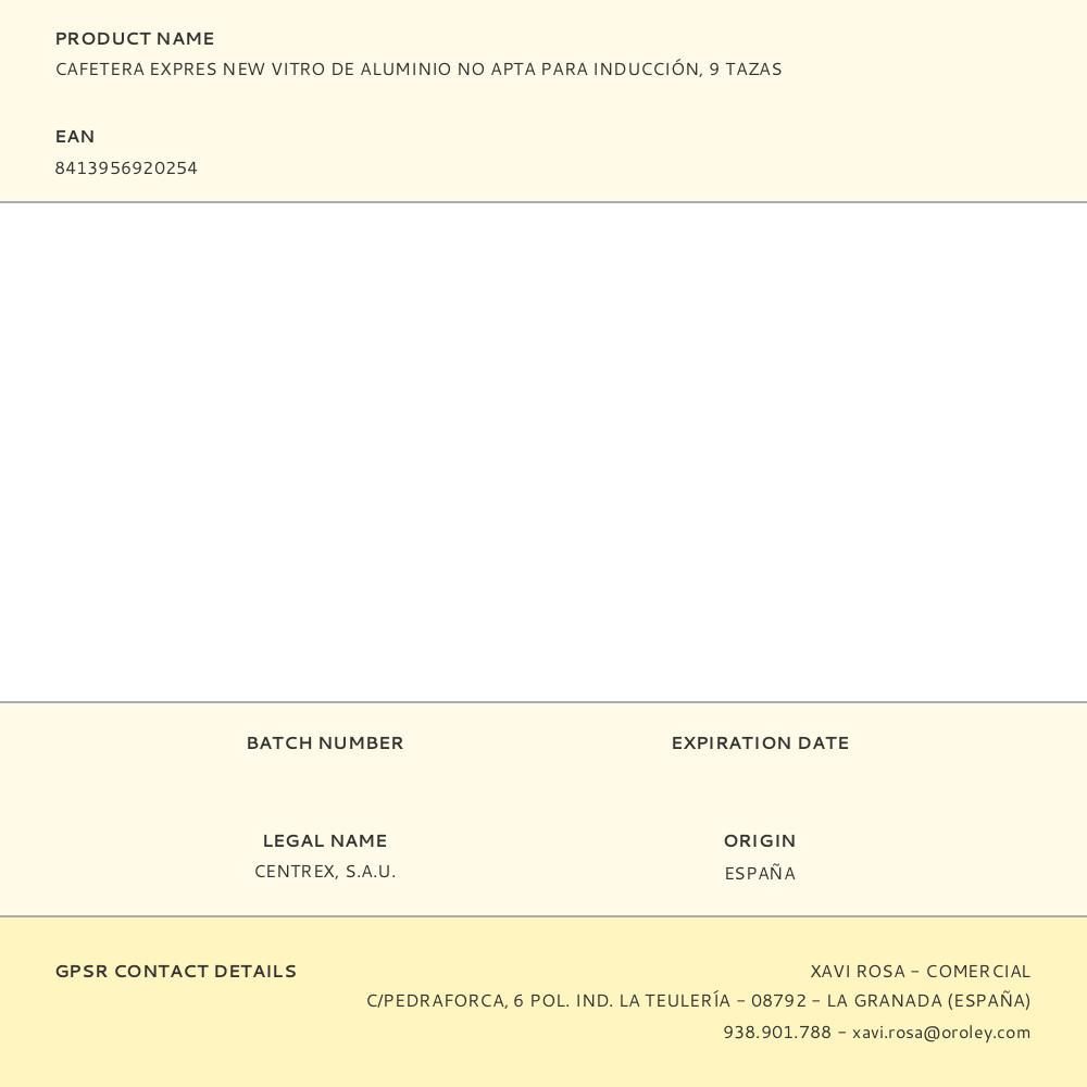 Cafetera Expres New Vitro De Aluminio No Apta Para Inducción, 9 Tazas