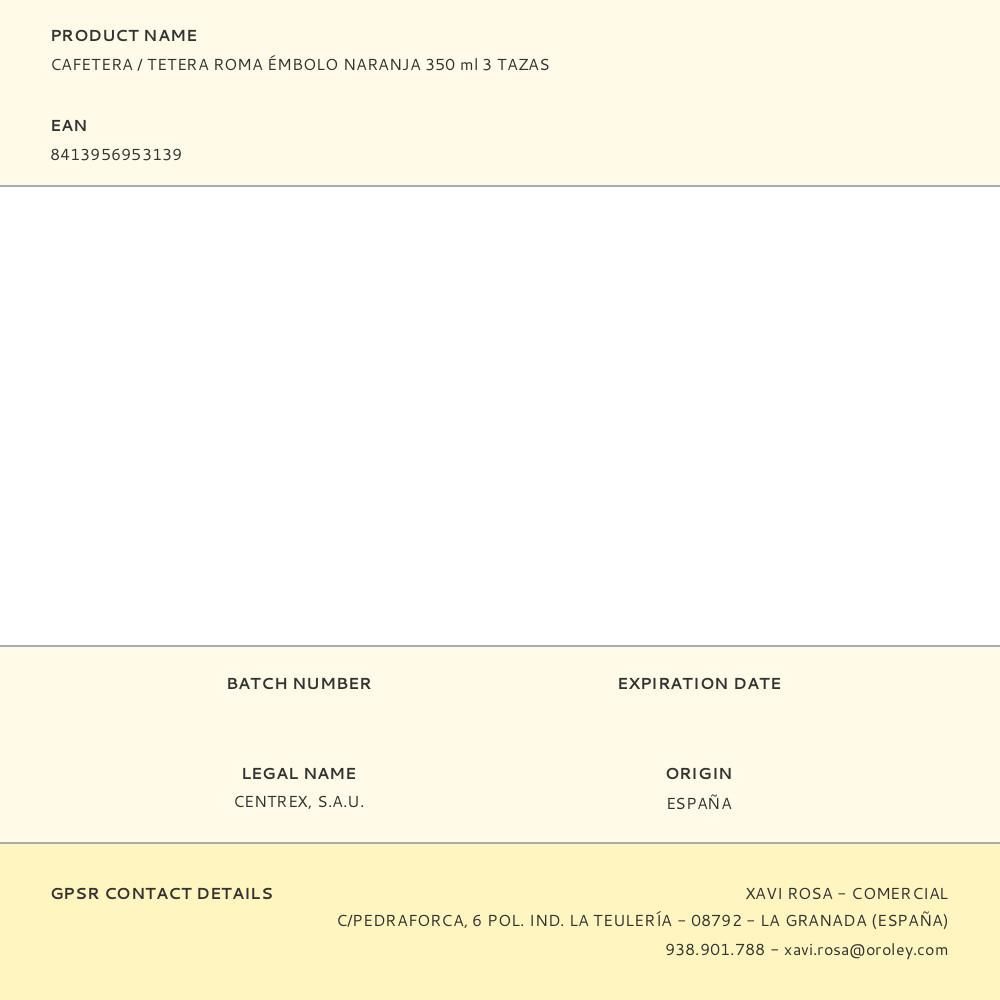 Cafetera / Tetera Roma Émbolo Naranja 350 Ml 3 Tazas