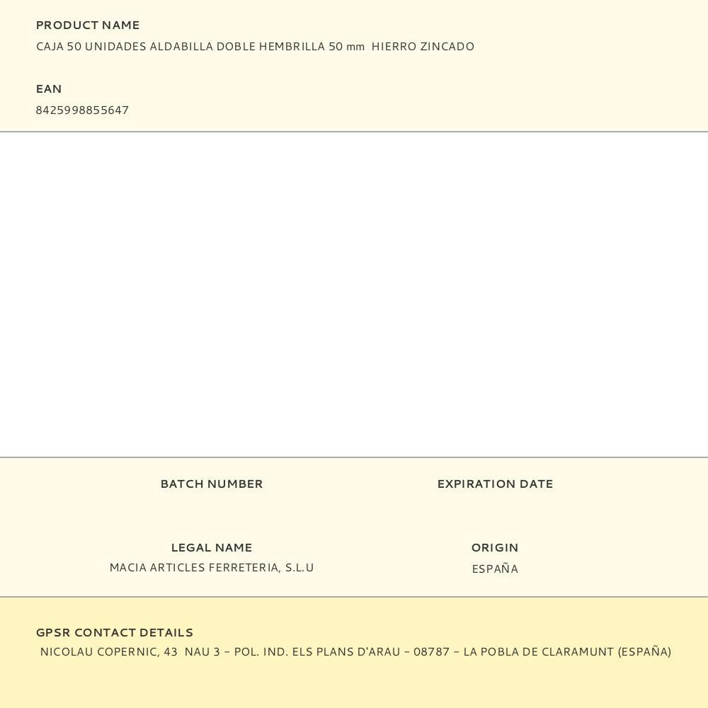 Caja 50 Unidades Aldabilla Doble Hembrilla 50 Mm Hierro Zincado