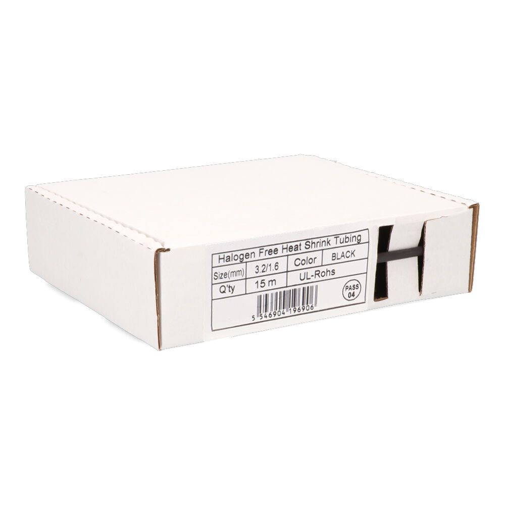 Caja Termoretractil Dosificadora Ø3,2 - 1,6 Mm; 15M. Caja Dosificadora Neutra Termo-Retractil Ø3,2 - 1,6 Mm; Color Negro 15M. Primera Medida Antes De Contraer Y La Segunda Máxima Contracción Tras Calentado.